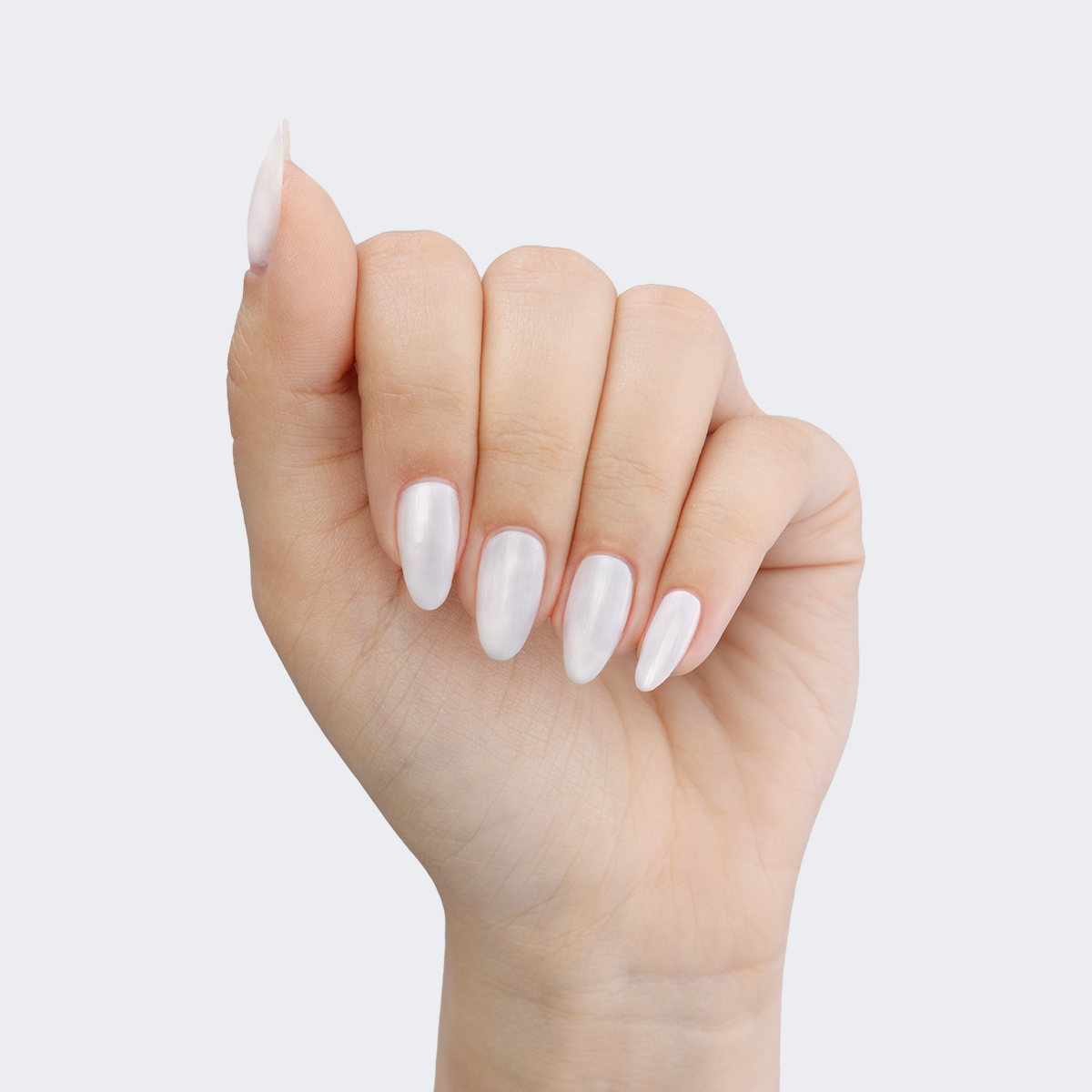 White. Pearl finish. Opaque. Cool undertone.
