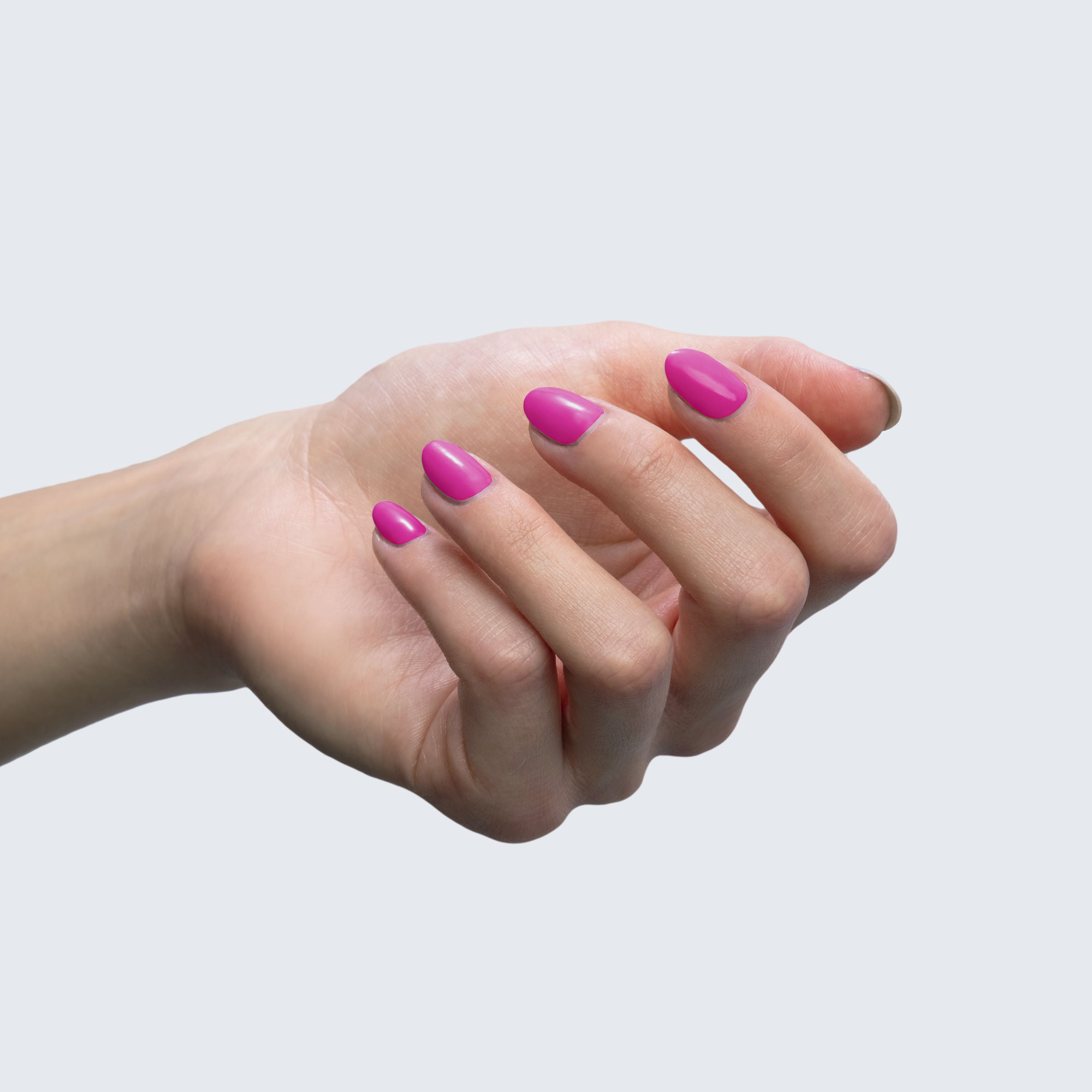 Neon barbie pink. Semi-gloss. Bright. Opaque. Cool undertone.